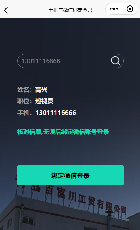 通過搜索您的手機(jī)號,獲取您的身份信息,身份確定無誤后,綁定微信實(shí)現(xiàn)登錄。