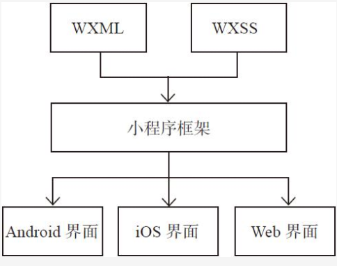 WXML (WeiXin Markup Language)是框架設(shè)計(jì)的一套標(biāo)記語言,用于渲染界面,WXML的渲染原理和React Native思路一致,通過一套標(biāo)記語言,在不同平臺(tái)被解析為不同端的渲染文件,如圖所示。