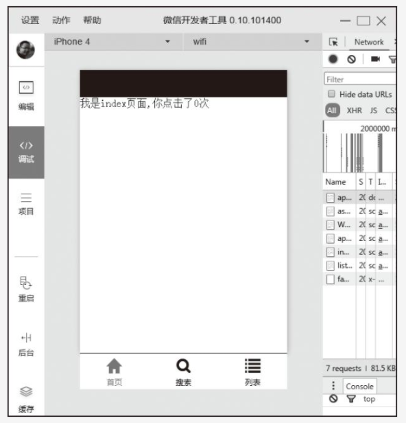 模式后,在開發(fā)者工具的控制面板,調(diào)試信息以info的形式輸出,如圖2-7所示。其中信息有Page的注冊(cè)、頁面路由、數(shù)據(jù)更新、事件觸發(fā),可以幫助開發(fā)者快速定位一些常見問題。